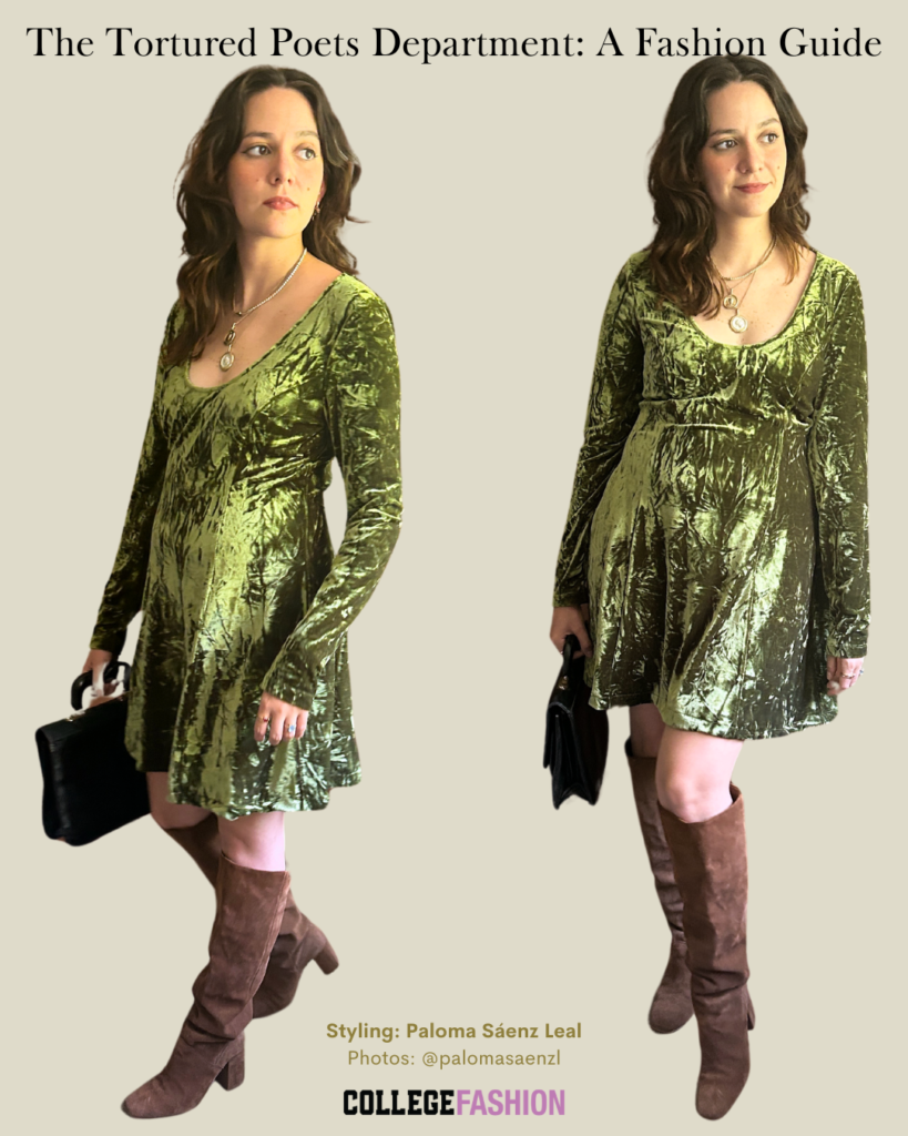 To recreate Taylor’s crushed velvet dress look, I managed to get my hands on this beautiful green crushed velvet dress that looks just like Taylor’s.