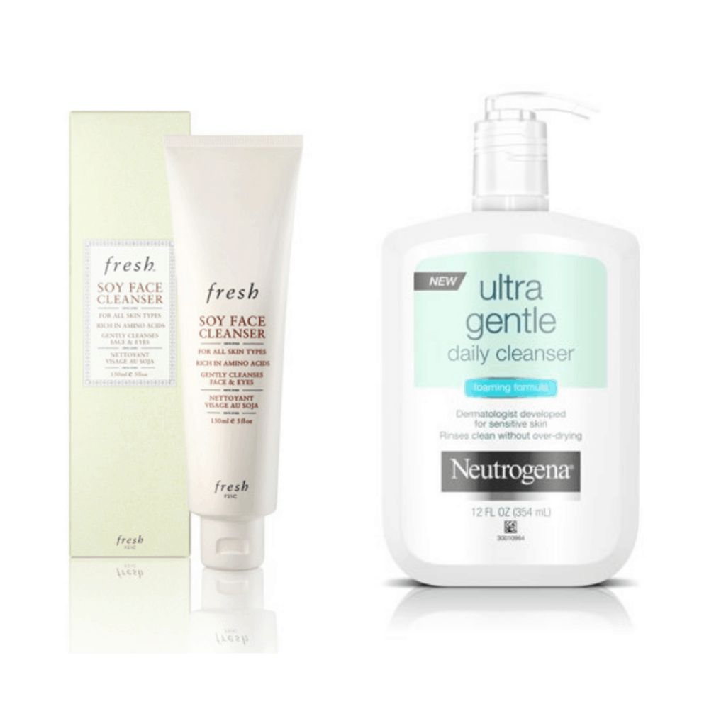 For the second cleanse you want to stick to something on the gentler side so that it doesn’t dry out your skin. The Soy Face Cleanser from Fresh is a very gentle cleanser that is safe for use on face and eyes. Or you can pick up a gentle cleanser from the drugstore, the Neutrogena Ultra Gentle Daily Cleanser is made to not dry skin.