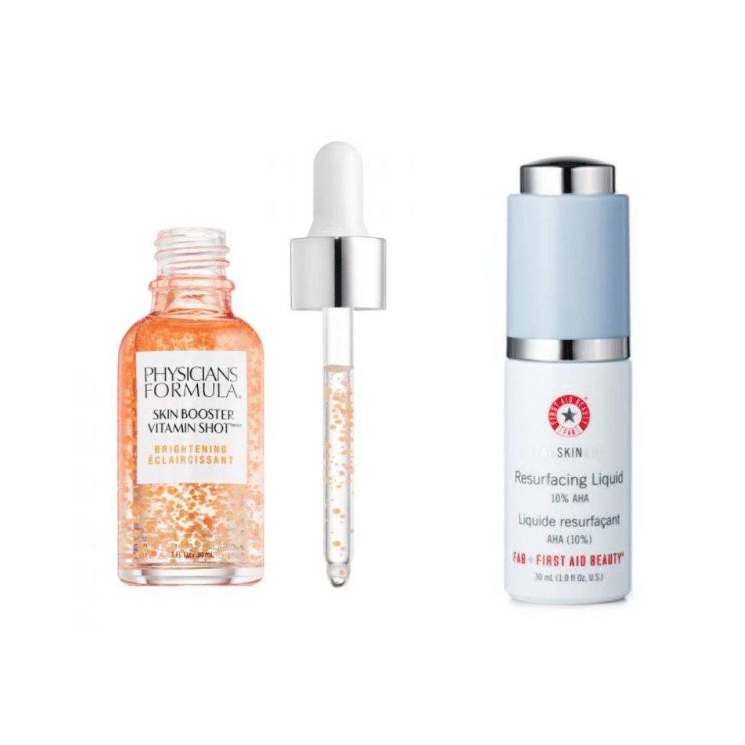 Another one of Physicians Formula’s new serums will help you with exfoliation as well. The Physicians Formula Brightening Booster Vitamin Shot is a great drugstore option. It contains a great exfoliating ingredient and lots of brightening and soothing ingredients as well.