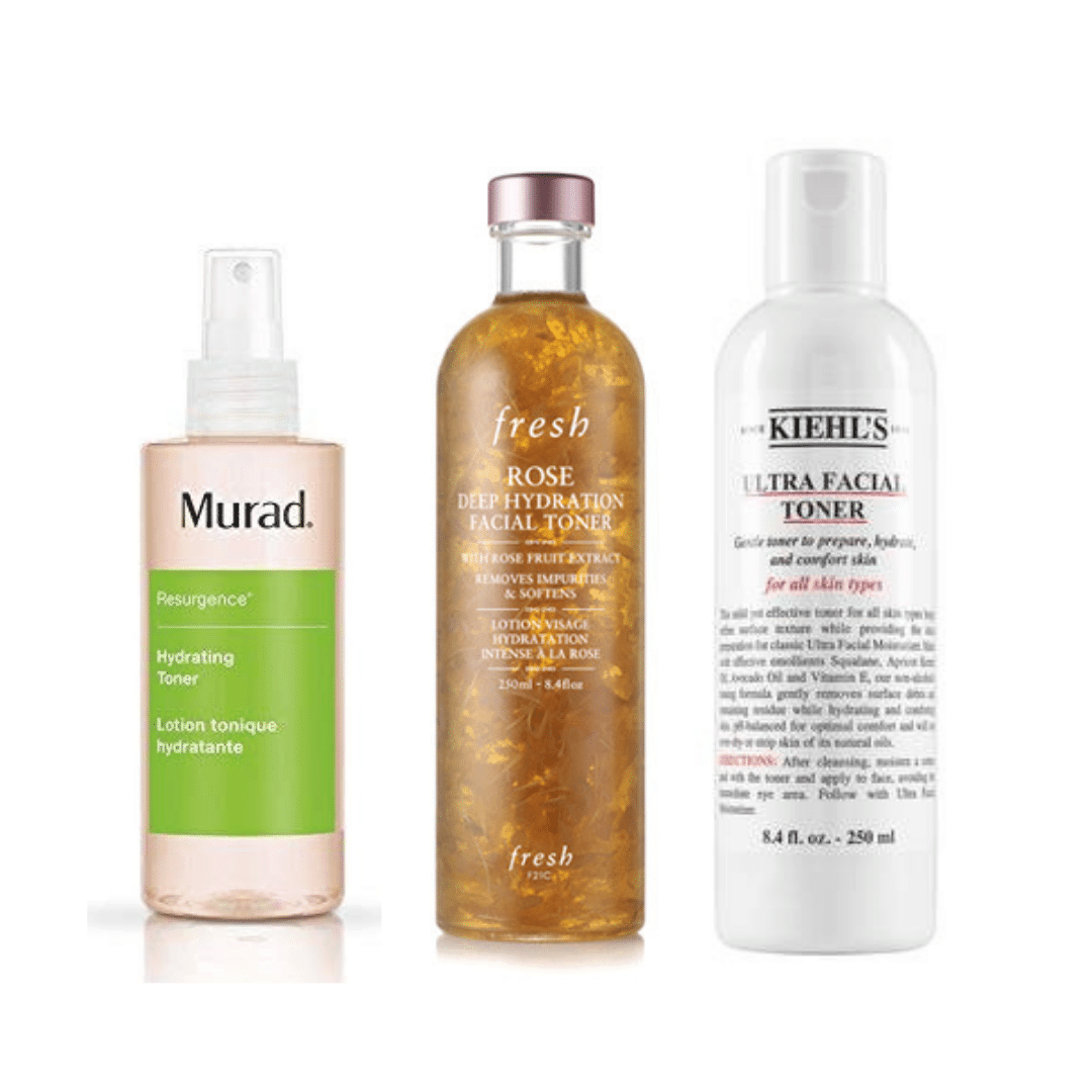 Toners are great for adding a bit of extra hydration and they prep the skin to better absorb any products that you apply later. There are many different types of toner, so I suggest looking for products that explicitly state that they are for hydration. It is important to look at the ingredients because many toners contain alcohol. Instead of alcohol, you want to be looking for ingredients like rose for its toning properties and hyaluronic acid for its hydrating properties (it draws water into the skin).
