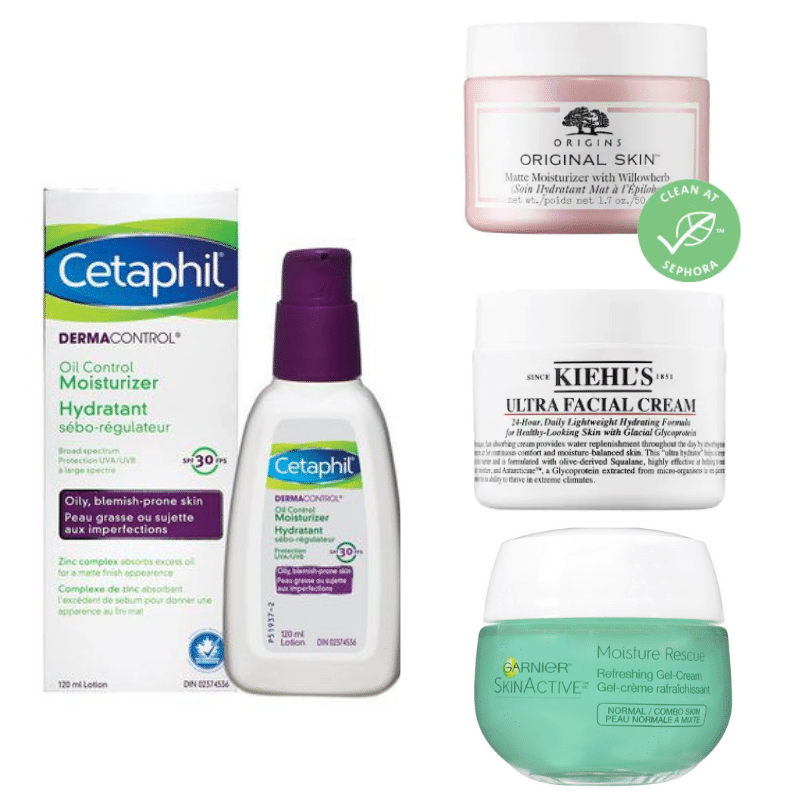 An oil control moisturizer is a great option because it is both moisturizing and oil-controlling so it will help to balance your skin types. A great drugstore option is the Cetaphil Oil Control moisturizer, and it has SPF 30. This way you get to skip a step in the morning and combine your moisturizer and SPF.