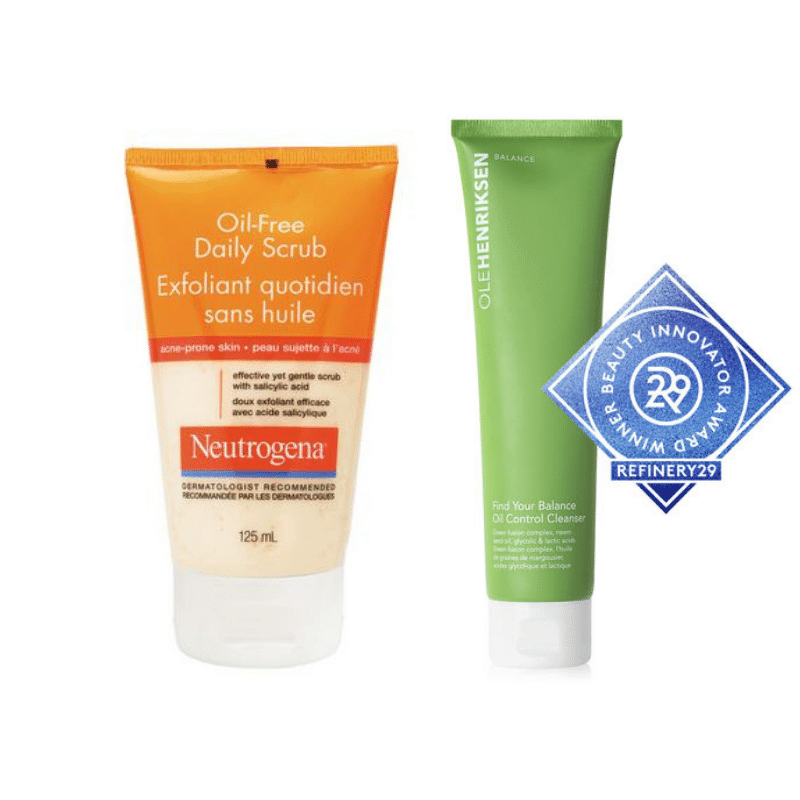 For your double cleanser, an oil control product is a great option. The OleHenriksen oil control cleanser is part of a newer line and not only helps to control your oil but also deep cleanse your pores. Neutrogena also has a great option at the drugstore, their oil free daily scrub helps to control oil and blemishes as it contains salicylic acid which is a great ingredient for fighting breakouts. Both of these cleansers would work great as a double cleanse product and as a morning cleanser.