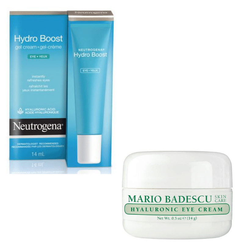 The Mario Badescu Hyaluronic Eye Cream gets straight to the point. It uses hyaluronic acid to draw water into the skin. Not only does this hydrate your skin but it also visibly plumps it up. At the drugstore you can pick up the Neutrogena Hydro Boost gel cream which also includes hyaluronic acid and is very comparable to the Mario Badescu cream. (Note that the Mario Badescu cream is actually cheaper than the drugstore gel in this case!)