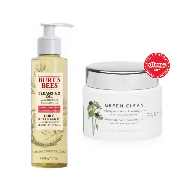 A great balm cleanser is Farmacy’s Green Clean. This cleanser is a balm to oil product that melts away makeup and has the added bonus of being a certified clean product. As a drugstore option, the Burt’s Bees Cleansing Oil is a great choice for all skin types.