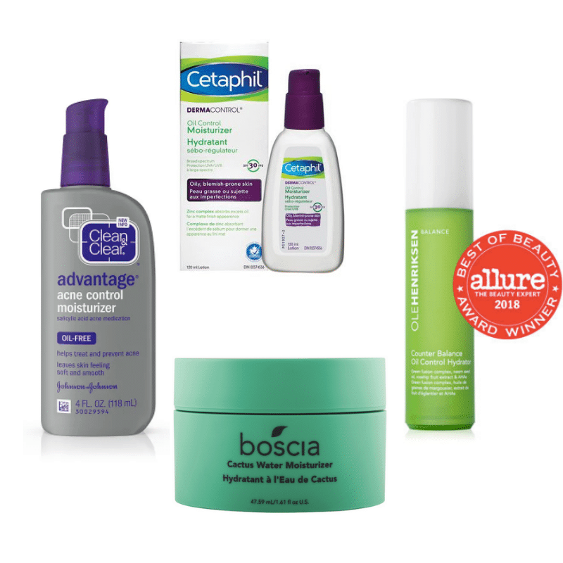 The drugstore option I recommend most is Clean and Clear’s Acne Control Moisturizer — it’s an oil-free moisturizer that contains salicylic acid to help heal your skin and prevent future breakouts. And because it’s oil-free, the formula isn’t greasy!