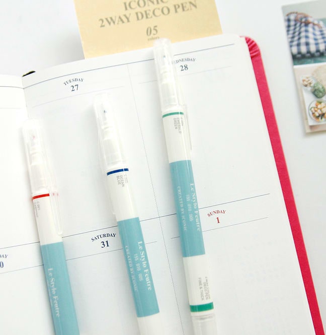 We love the colors in this set (Carmine Red, Peach Pink, Canary Yellow, Emerald Green and Ocean Blue), plus the differently sized nibs are perfect for highlighting and taking notes.