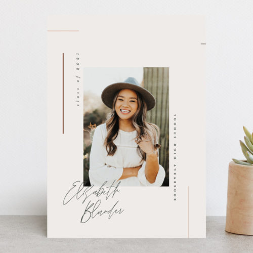 Here’s another minimal-styled graduation announcement for 2023 that has a girly California boho feel to it. It also has definite fashion girl vibes.